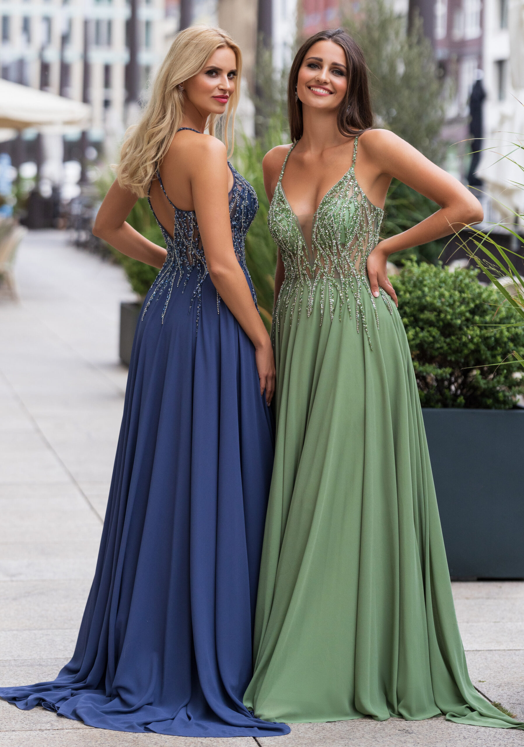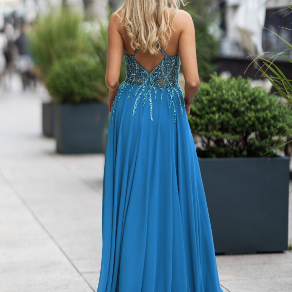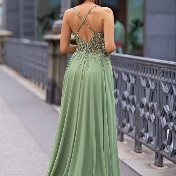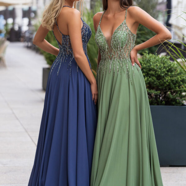 evening dress with straps and glitter beads body chiffon