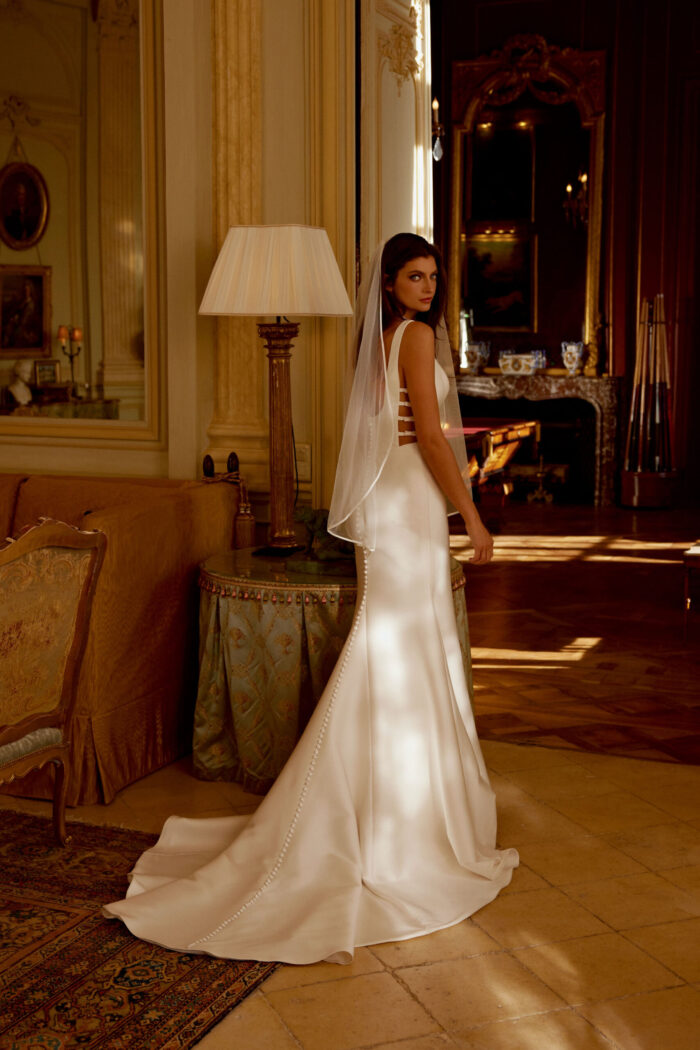 a unique fitted cut out mikado creative style with elegant bows by justin alexander