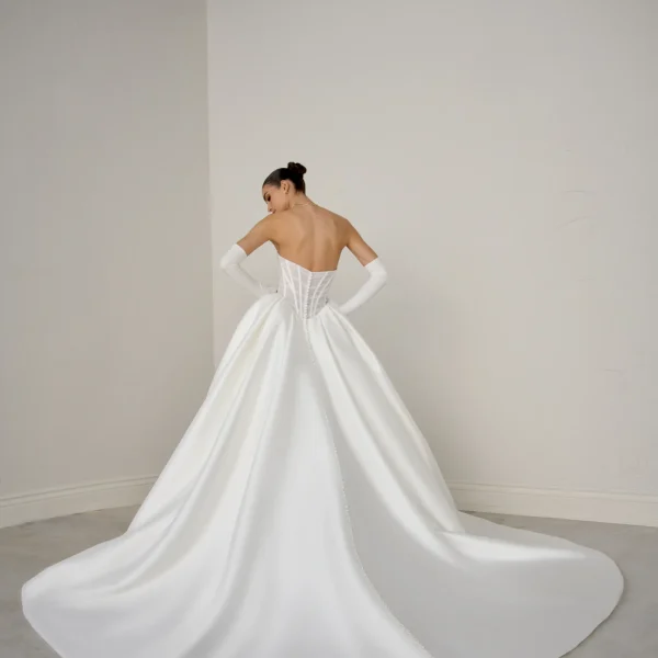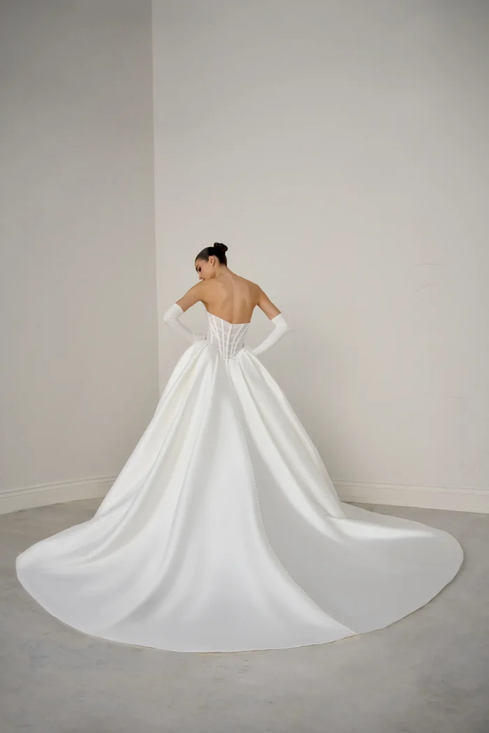 Mikado ballGown with Plunging Sweetheart Neckline with an Aristocratic style ,Mikado skirt with sheer tulle bodice and exposed boning.